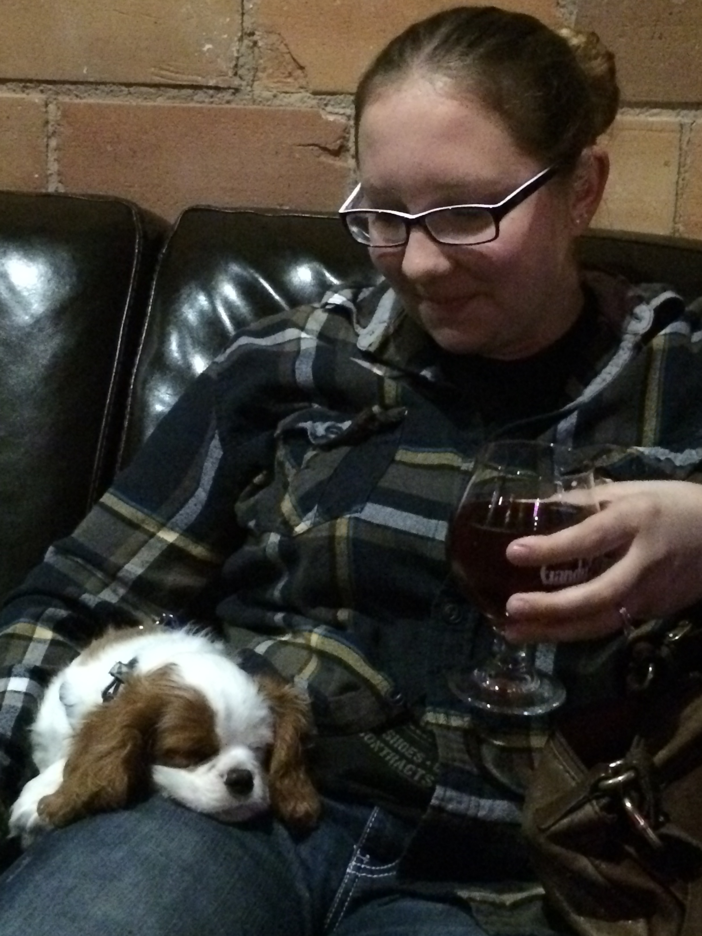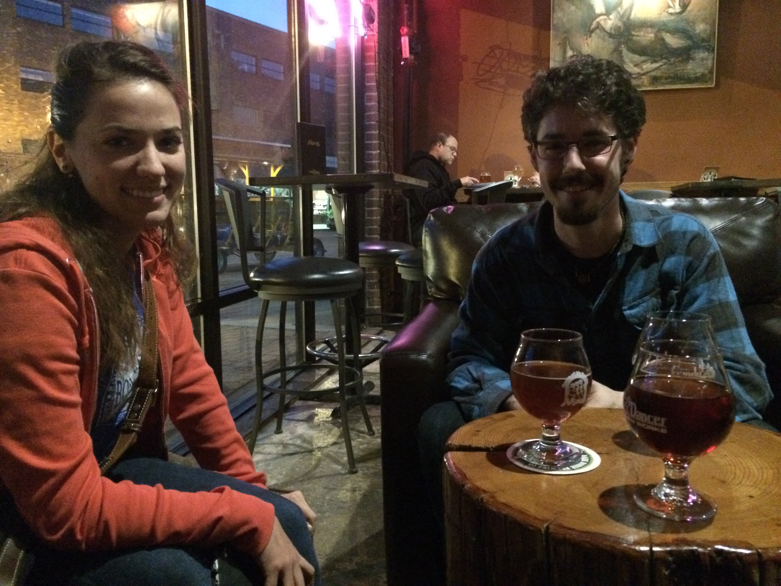Sioux Falls has a surprisingly large craft beer brewery selection. It is not something we expected when we came to visit our friend, Bethany, but it was a welcome discovery. We went out to a local bar tonight that has an ever-changing selection of beer, many of them brewed locally. We were fortunate enough to talk with one of the brewers after tasting his beer and what a treat that was! We both learned quite a bit about beer and were able to appreciate it that much more. As a huge bonus, our dogs were welcome at the bar! Both of them were awesomely well-behaved and seemed to relax and enjoy the night nearly as much as we did!