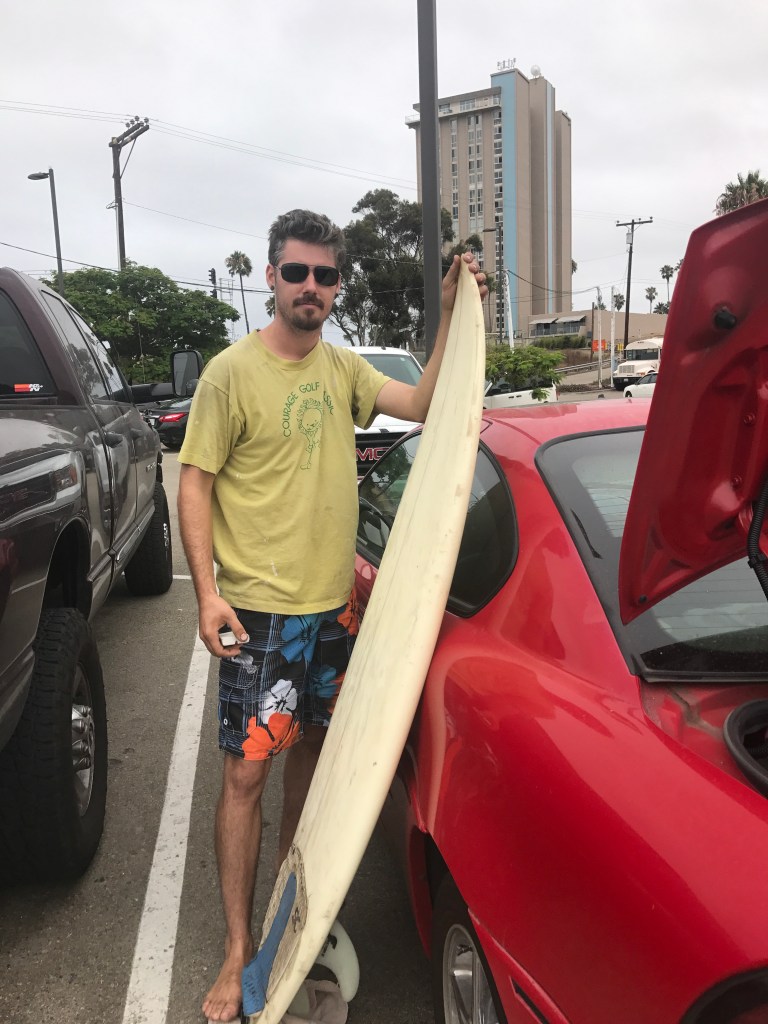 Monday we spent at the ocean. We learned that our new car can fit the small surfboard in it — convenient!