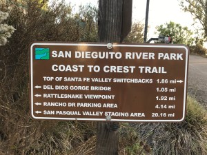 This challenge is a series of five different hikes with specific destination points. If we hike all five and take “selfies” at each of the specific points, we are awarded a certificate of completion from the San Dieguito River Valley Conservancy, as well as a gift card for an outdoor supplies store and a discount coupon for another one (perfect for us to use to get our JMT hiking supplies). And since there are two of us, we will each get these things!
